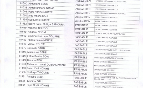 Voici toute la liste des candidats admissibles(L',L2) au Jyury du lycée Ameth Fall