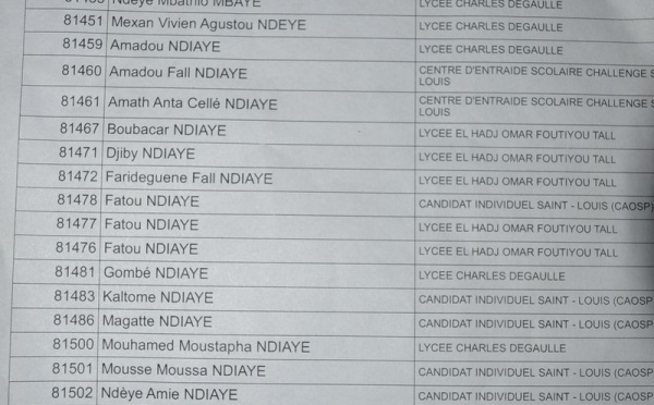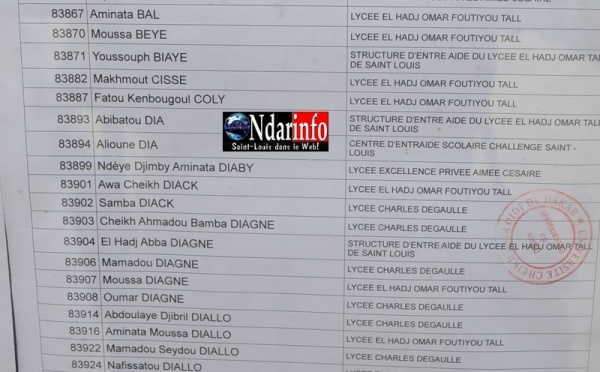 Ndarinfo vous livre la liste des admis d'office pour la Série S2( Lycée André Peytavin)