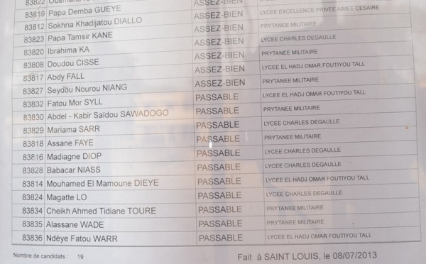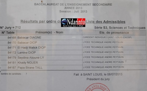 Résultats Bac 2013: Toute la liste des candidats admissibles(L',L2) au lycée Ameth Fall
