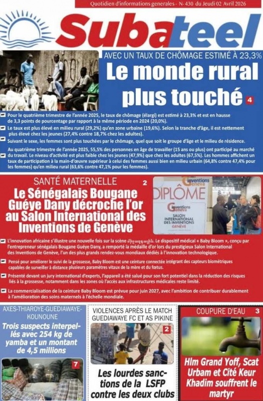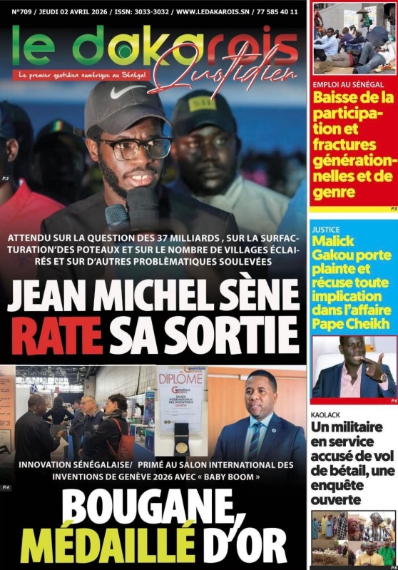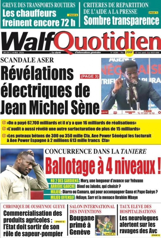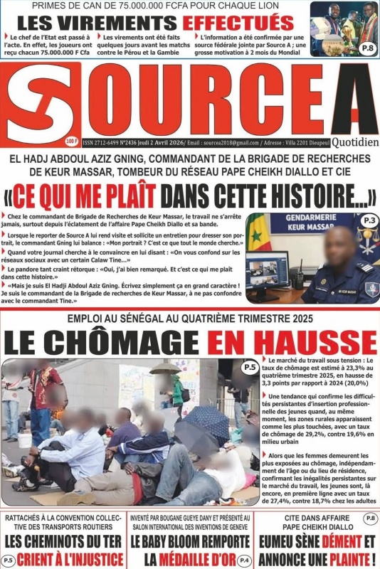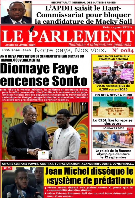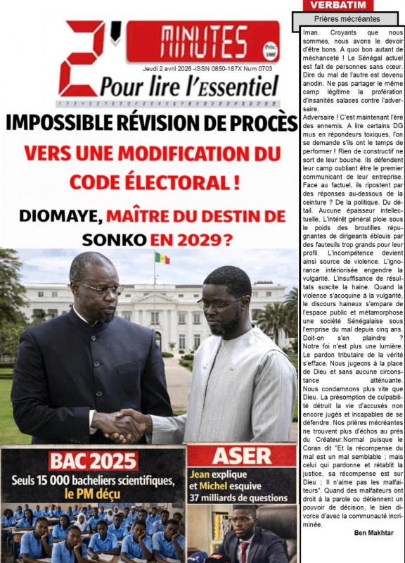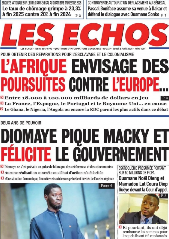 Unes des journaux du Jeudi 02 Avril 2026